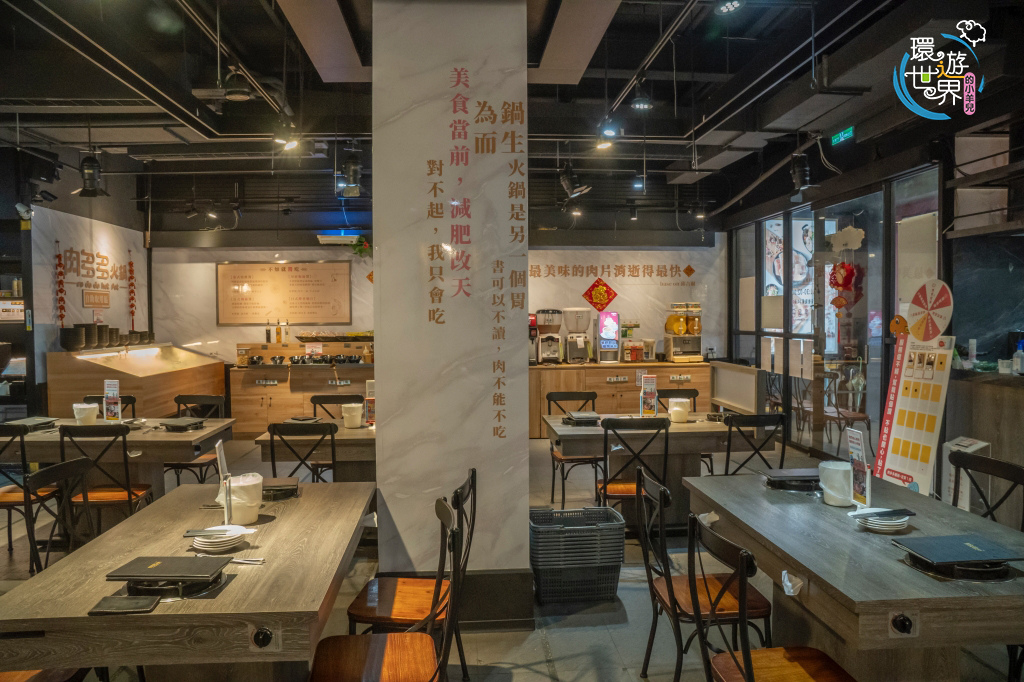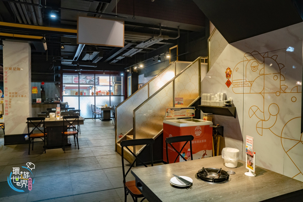 用餐區都在1樓,一桌可容納4−6人,沒想到店內有大理石配可愛暴龍外,吃火鍋還好文青風。