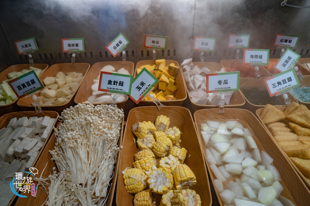 大陸妹、高麗菜、青江菜、蒟蒻結、海帶結、地瓜、三角豆腐、冬瓜、玉米、金針菇。