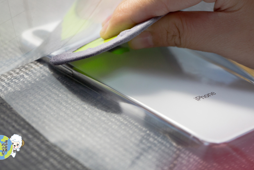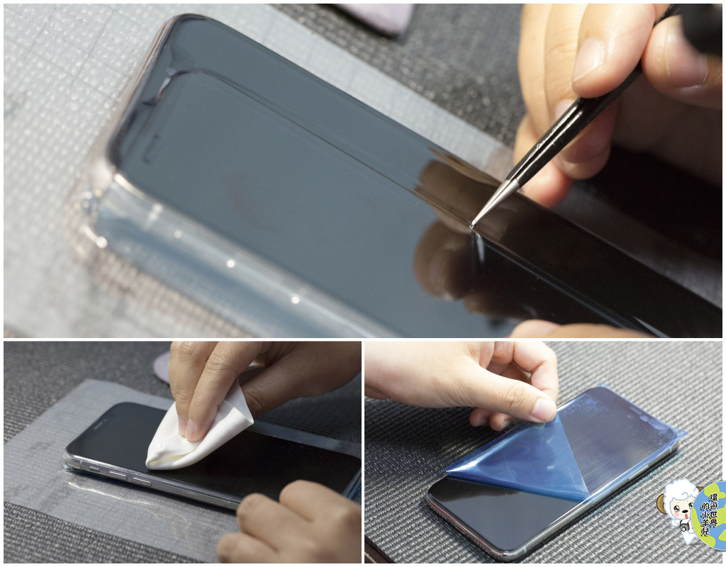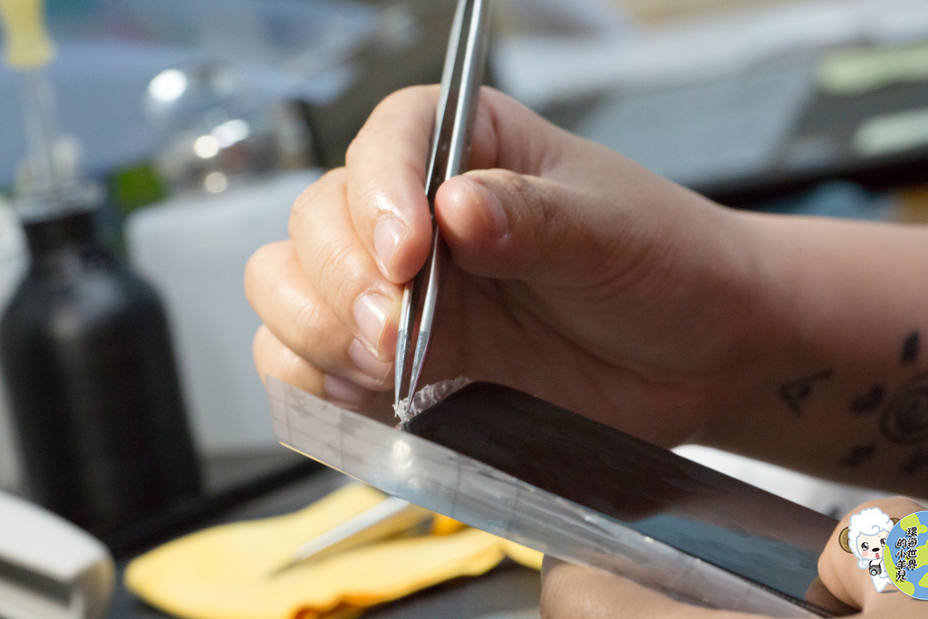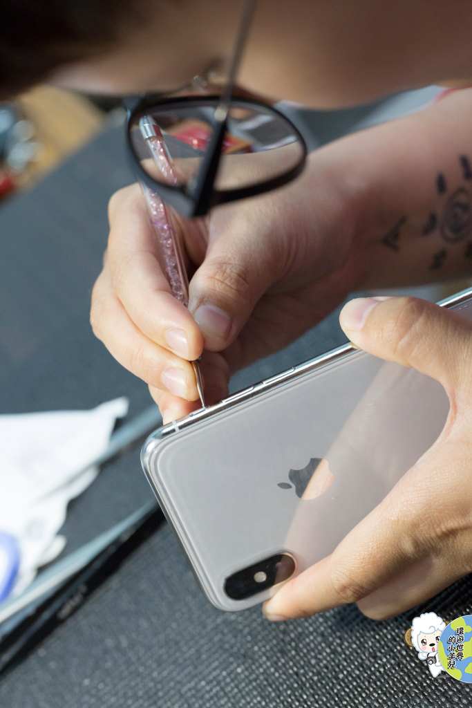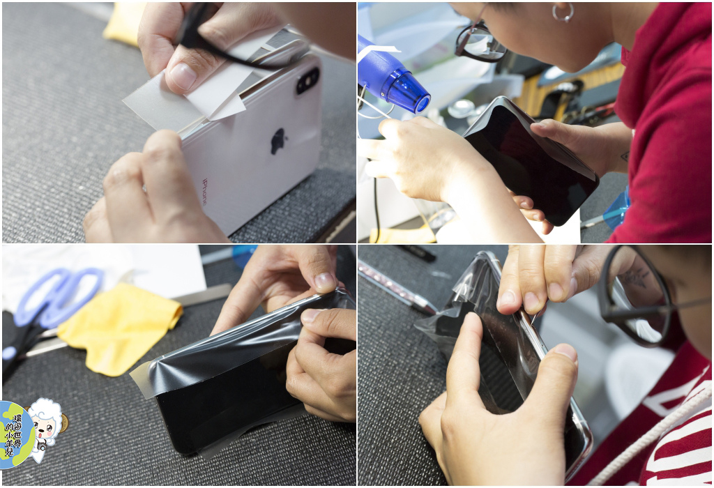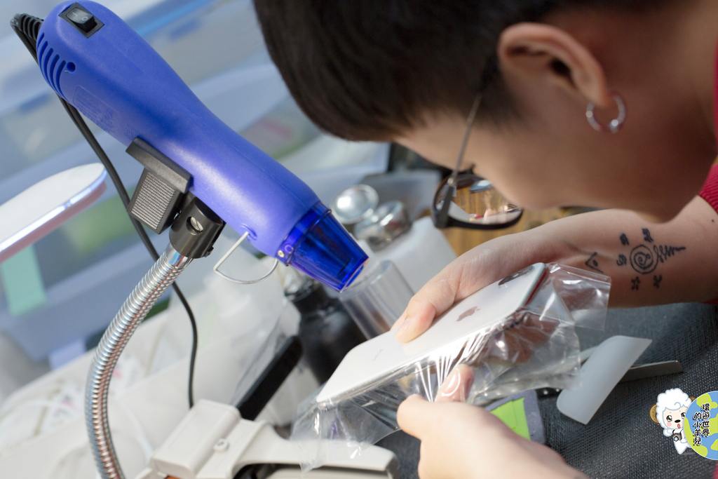 親自看到換保護貼過程,整個就是把女生愛的光療指甲作法運用到手機上。