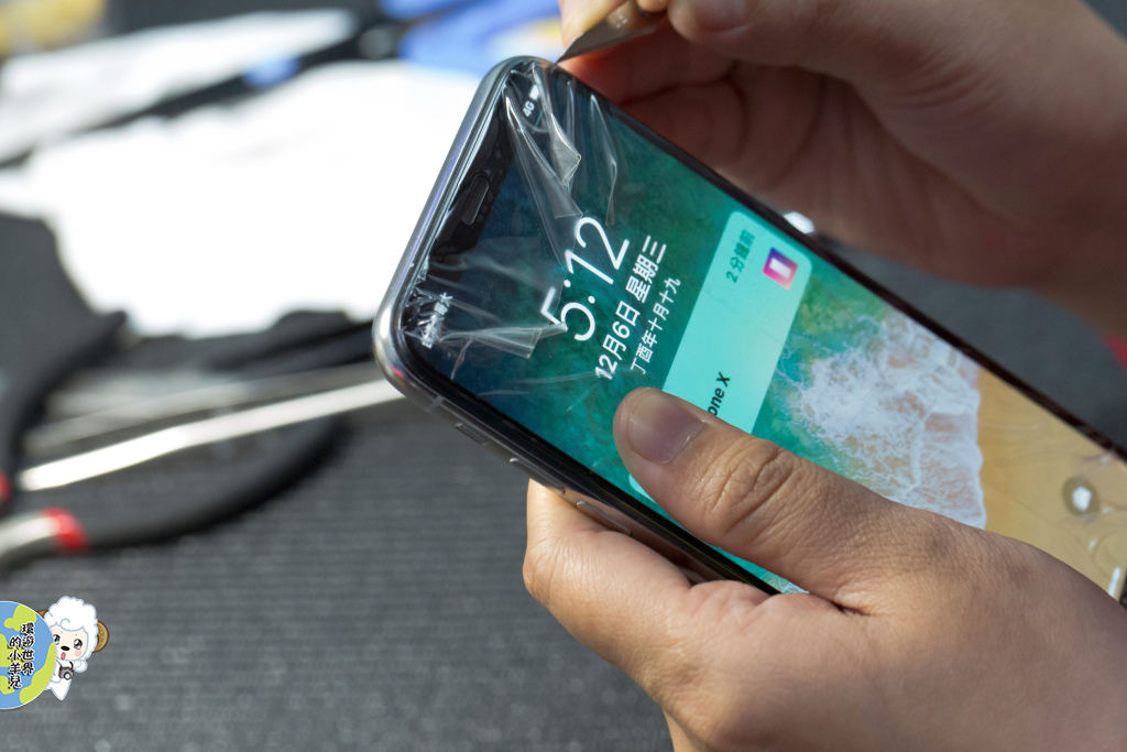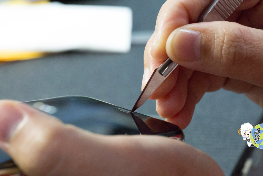 過程中換了好多次刀片,比起過去看過的換保護貼方式,還要吹毛求疵,